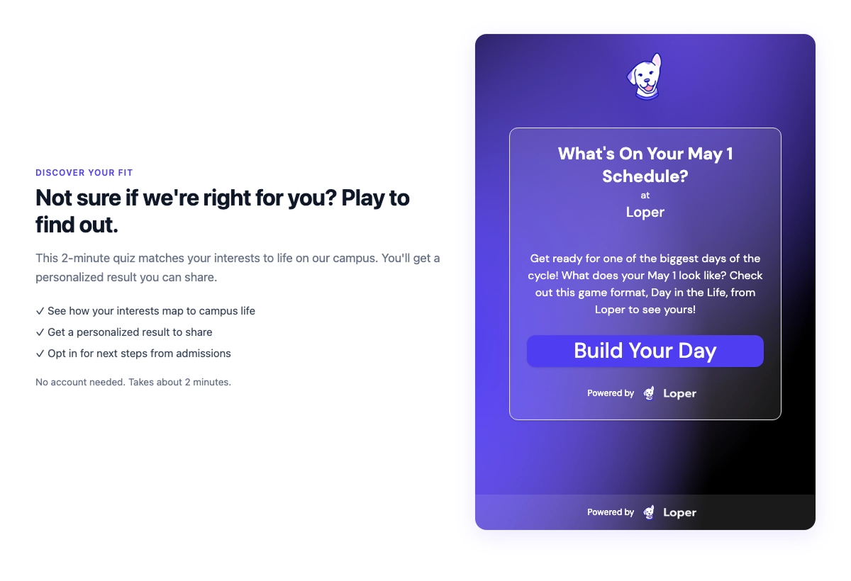 Your Loper web games are your team's modern marketing resource for engaging students throughout the funnel. Use the documentation below to embed your web games in landing pages across your website dependent across common content management systems and CRMs.